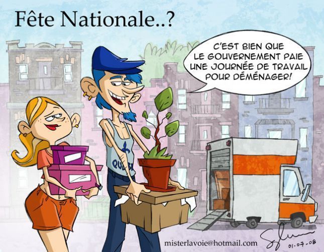 En fait, ce n'est pas vraiment pour bouder la fête nationale du Canada que les Québécois déménagent ce jour-là. Simplement il se trouve qu'au Québec un bail locatif ne peut se terminer qu'un 1er juillet. Cette disposition a pour effet de concentrer les déménagements sur cette journée unique dans l'année. L'avantage pour ceux qui déménagent ce jour-là, c'est qu'après avoir passé leur journée dans les cartons, ils peuvent aller profiter d'un beau feu d'artifice, histoire de fêter ça ! C'est un peu comme si tout le pays fêtait avec eux leur emménagement.